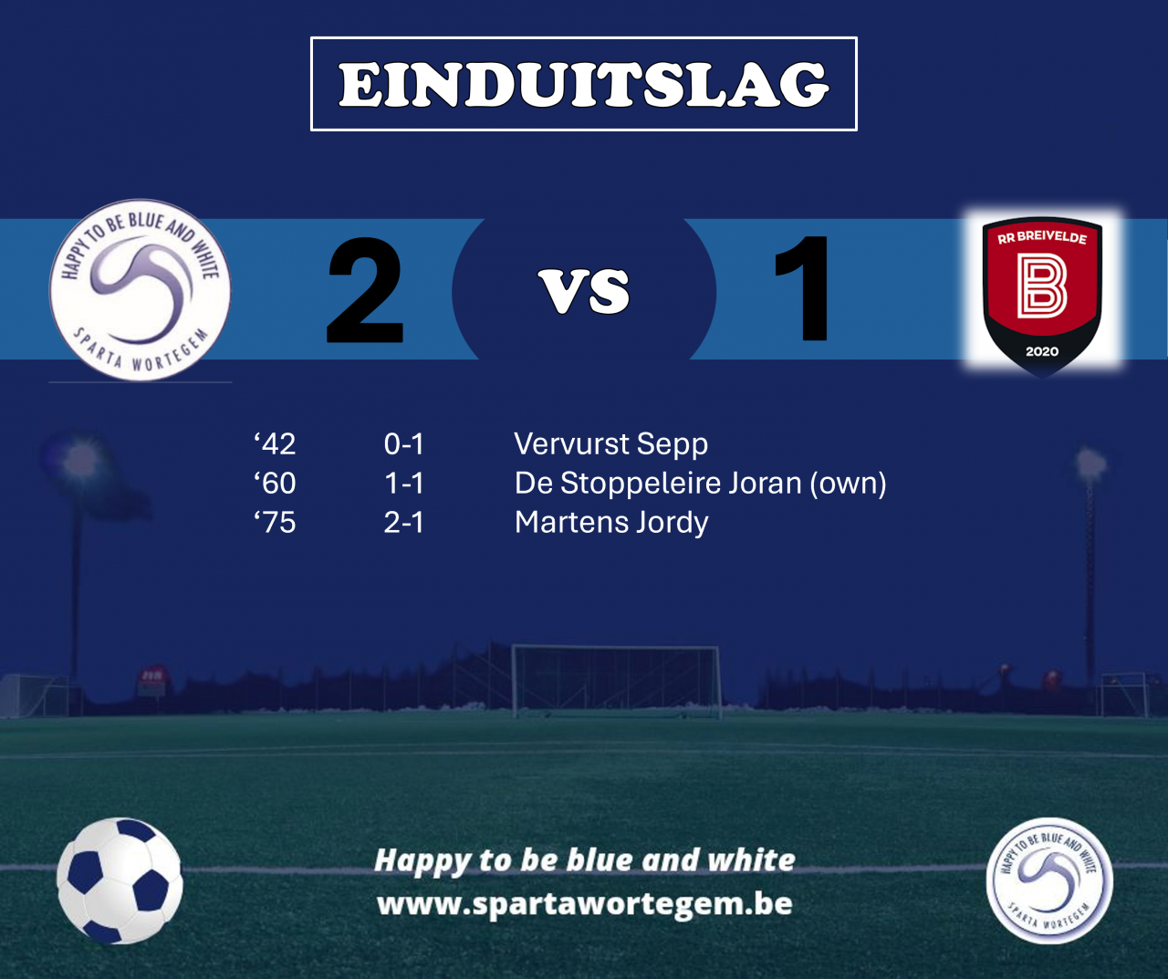 Het is toch bizar hoe een match soms kan kantelen, denk maar aan Antwerp vorige week Europees. Nu keerde het gelukkig in ons voordeel. Amper afgetrapt of de bezoekende defensie gaat aan het klungelen. Nathan VdB bedient Vic Schamp die zijn eerste voor Sparta binnenduwt. Amper vijf minuten verder net omgekeerd. Voorbereiding Vic Schamp en nu is Nathan de afwerker van dienst. Het begon er goed uit te zien. Het zag er nog beter uit net op het uur. Fout op Nathan binnen de zestien en ook nu twijfelt de ref geen seconde. Penalty. Onze kapitein Axel achter de bal en meesterlijk in de rechterbovenhoek geknald. De buit zou nu wel binnen zijn zeker? Maar de pret kon niet op. Amper twee minuten later hoekschop voor Sparta. Getrapt door Guillaume tot bij Jordy Martens die voor de 4-0 zorgt. Game over en de broodnodige overwinning binnengehaald. Volgende week weer een thuismatch tegen rode lantaarn Elene-Grotenberge. Als we die ook winnend kunnen afsluiten dan lonkt de top-vijf.